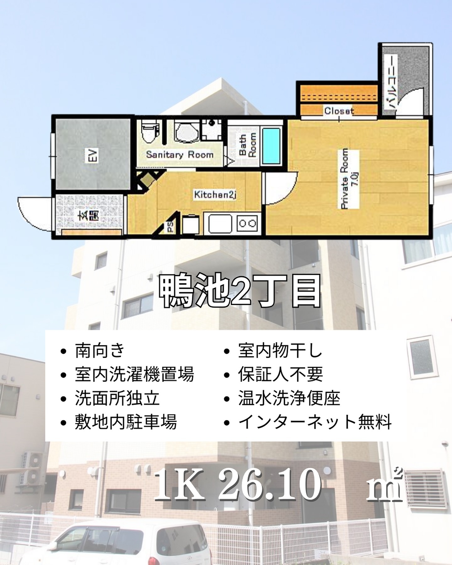 1K(洋室7,K2) / 26.10㎡