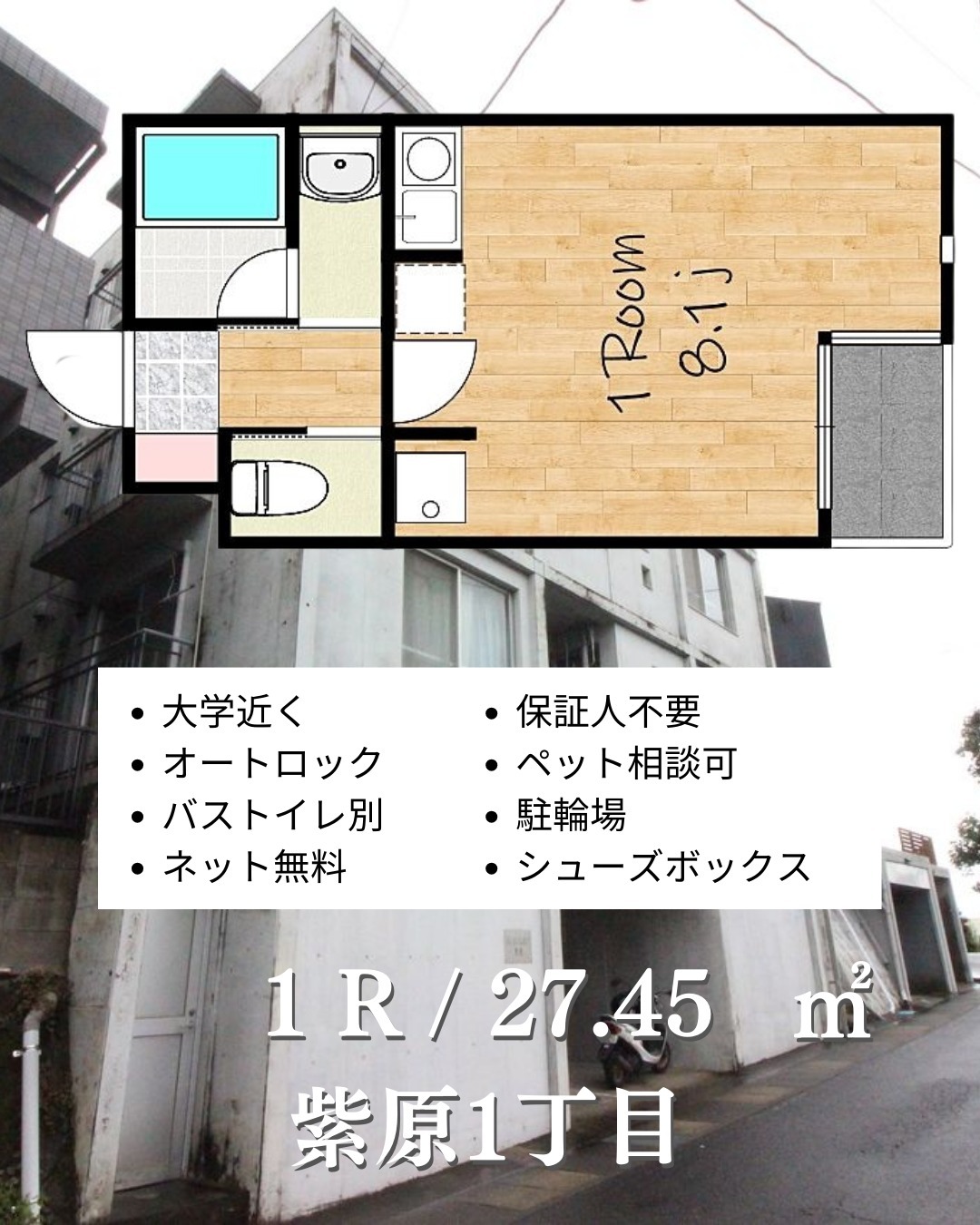 1R(洋室8.1) / 27.45㎡