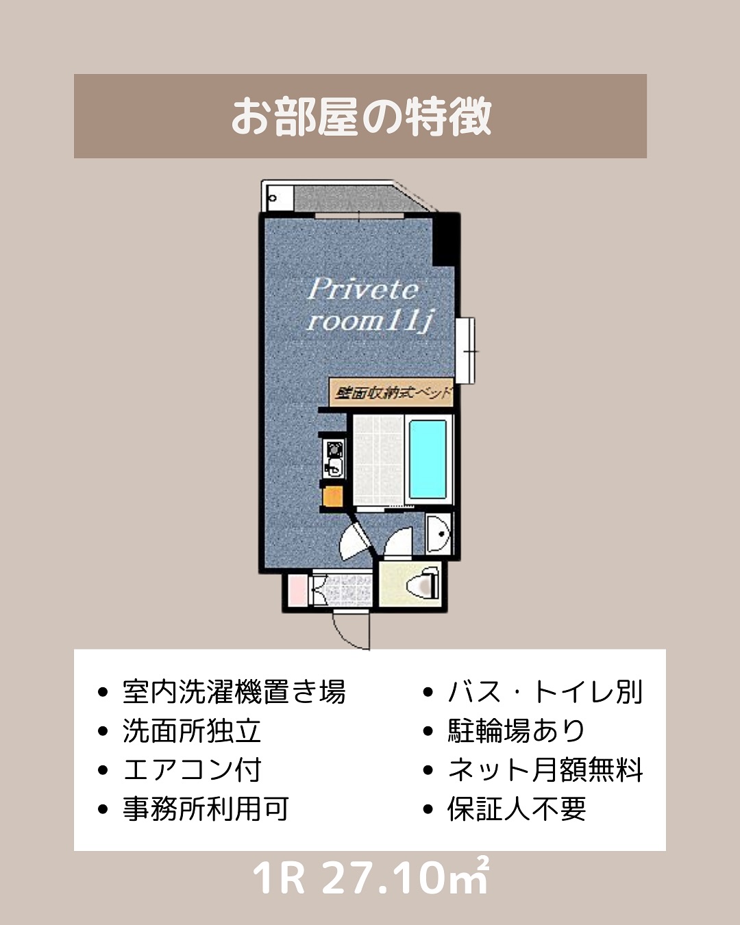 広々27.10㎡!開放感のあるワンルーム