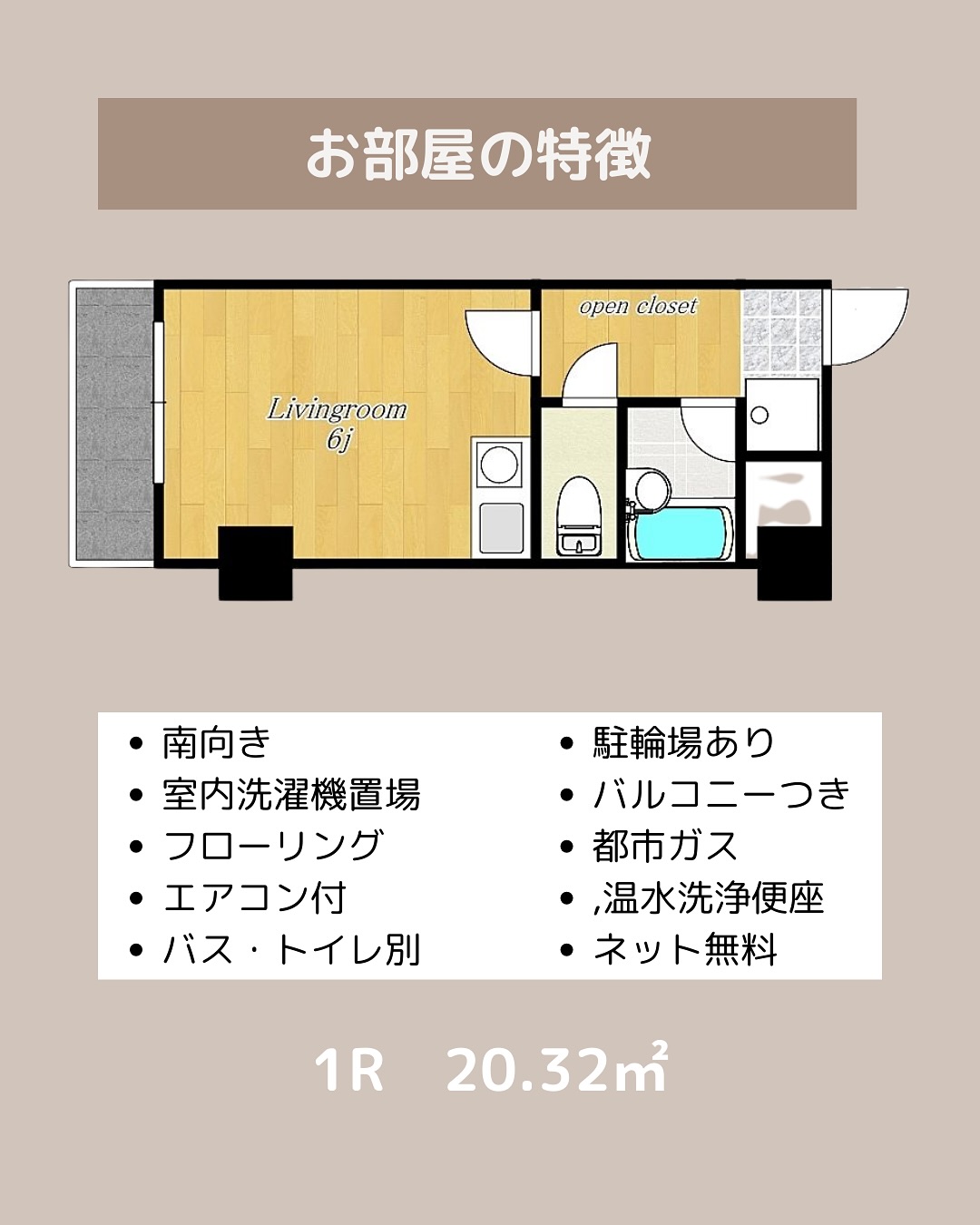 間取り:1R(洋6帖)