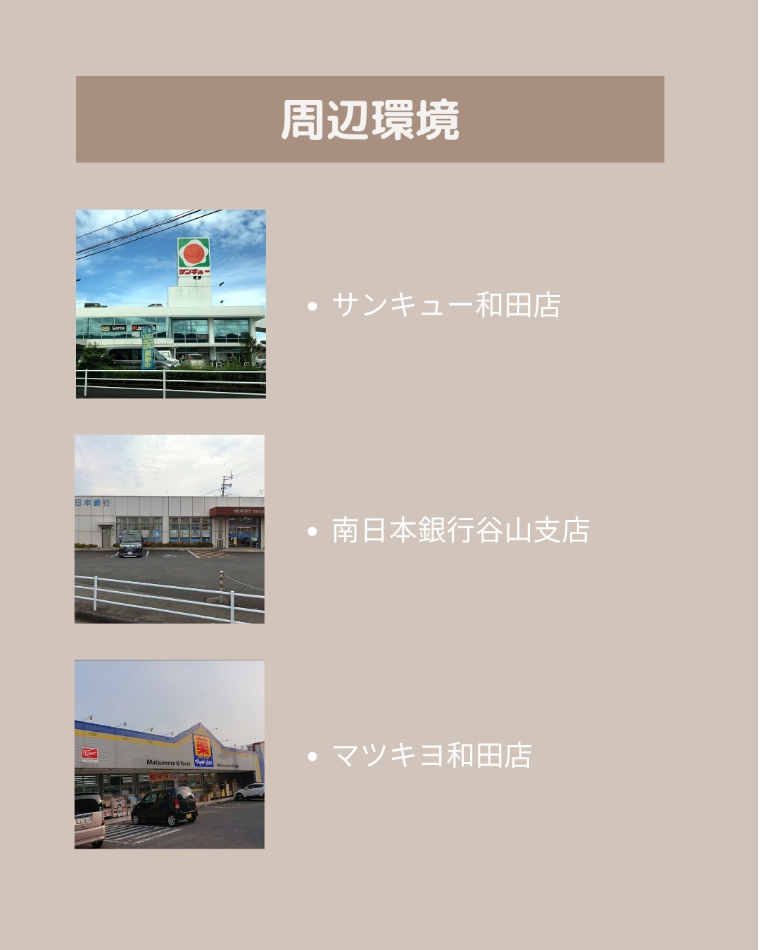 ・コンビニやスーパーが近く、生活に便利な立地
